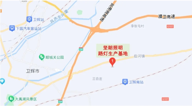 坚朗照明路灯生产基地位于河南省新乡卫辉市,地处中原腹地 神马影院在线,交通物流便利,周边有省道(S101),国道(G107),国家高速(G4)以及郑济高铁(卫辉南站)。