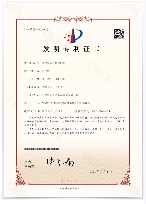 【科研成果】坚朗再获四项海内外发明专利